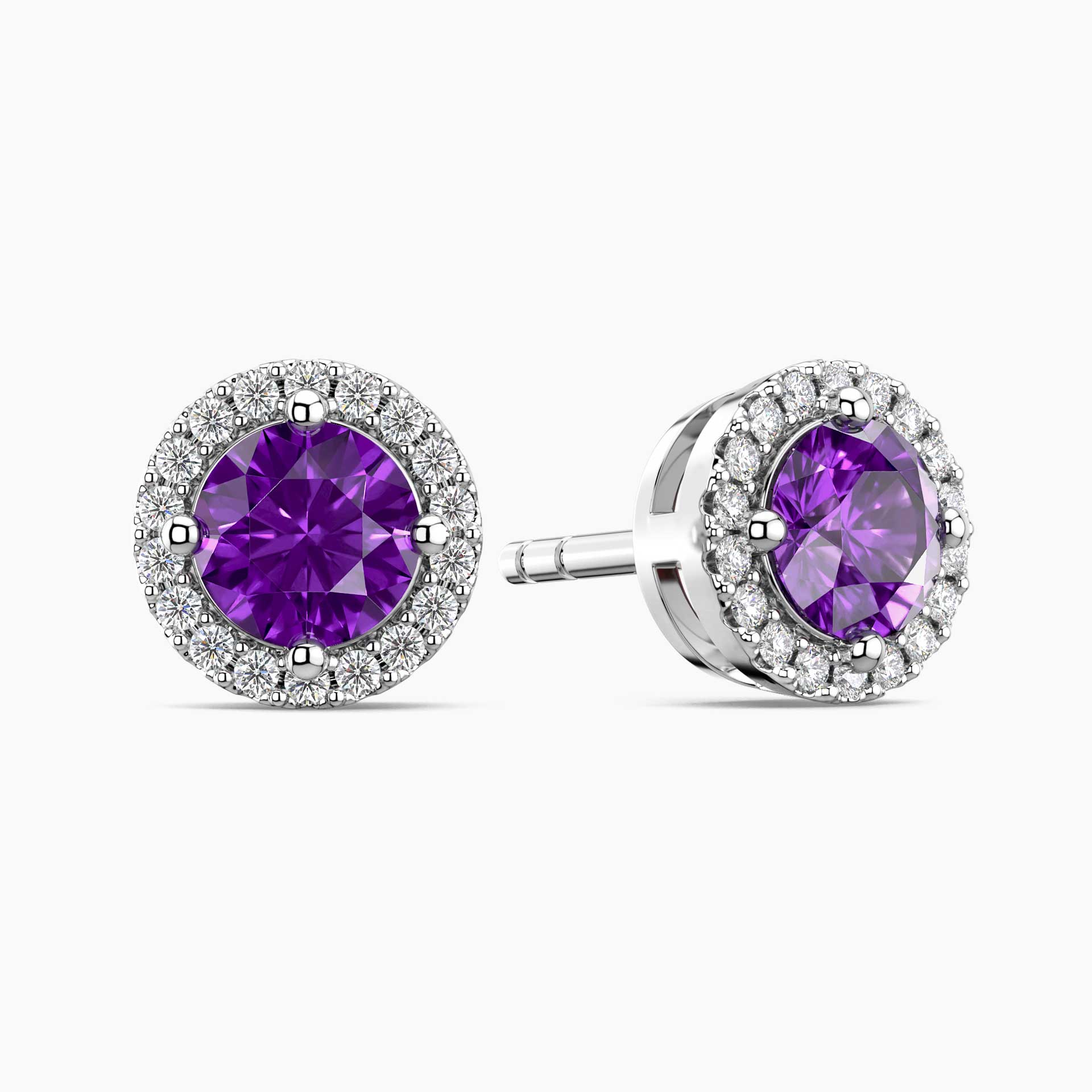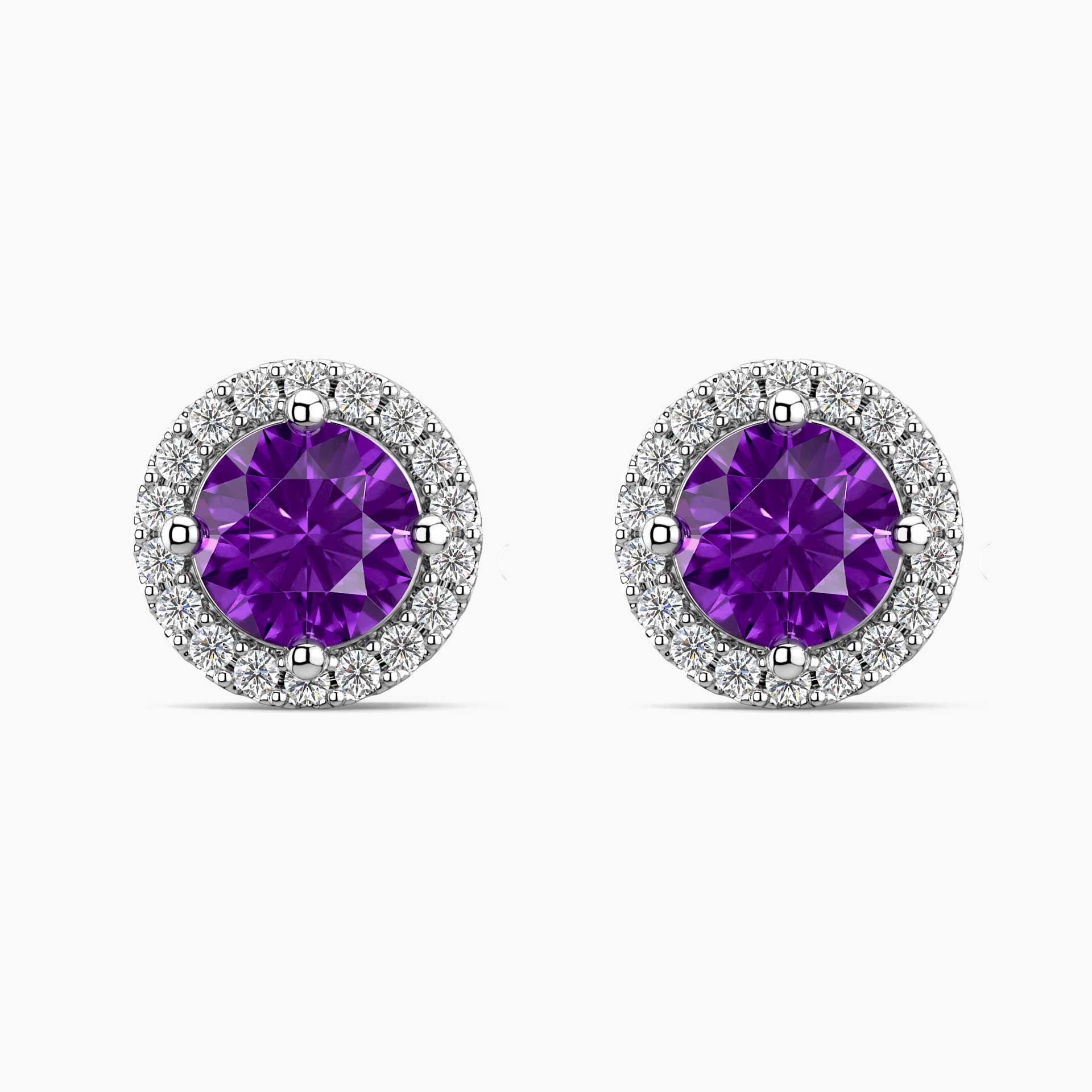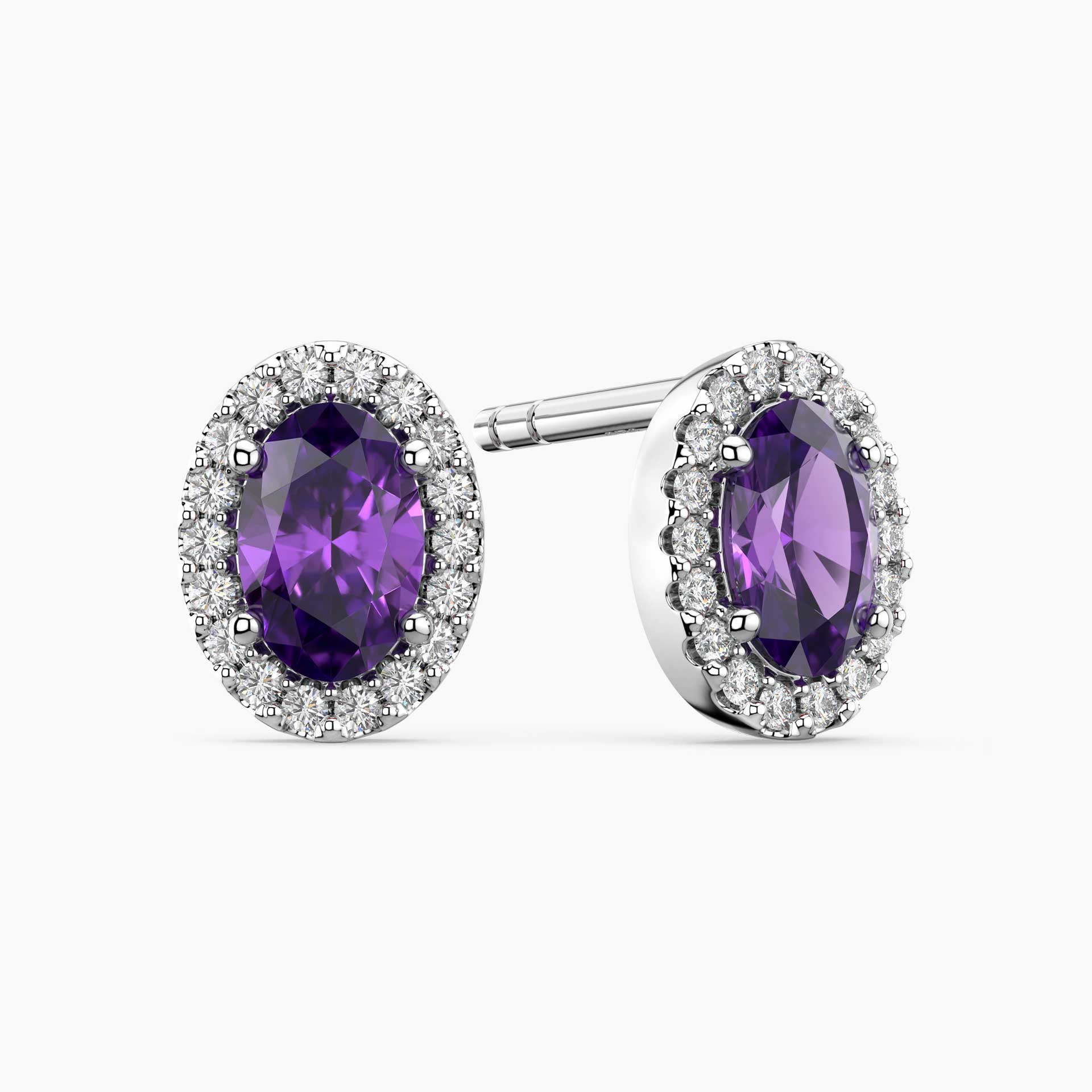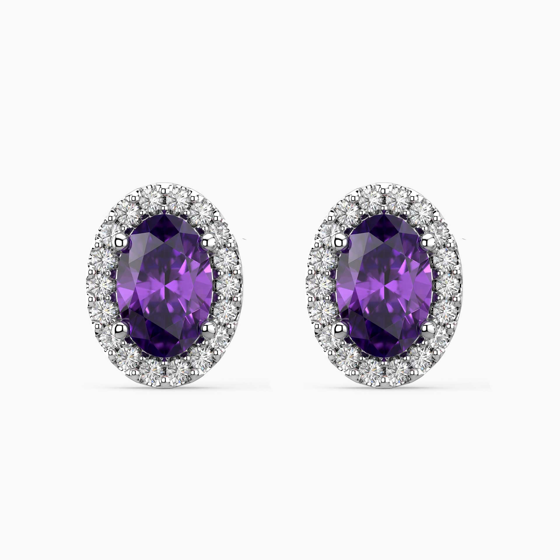Oval Amethyst Halo Stud Earrings – Sterling Silver | Irosk
