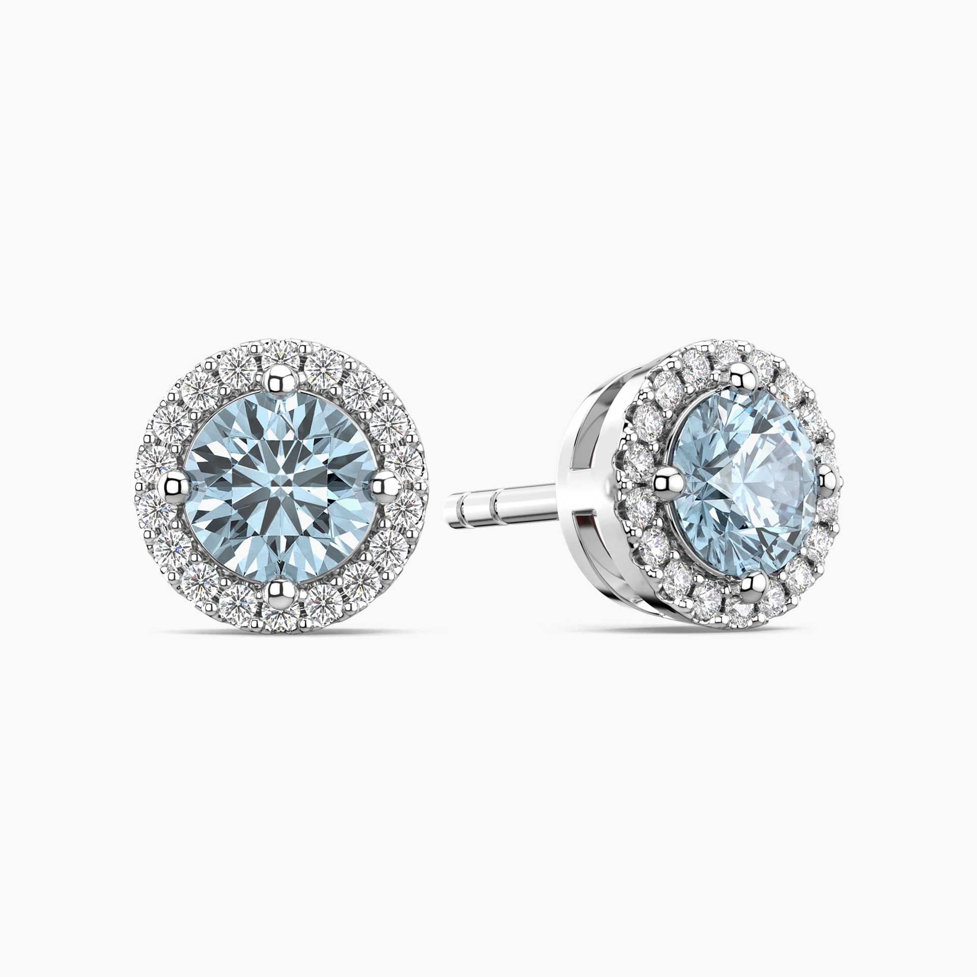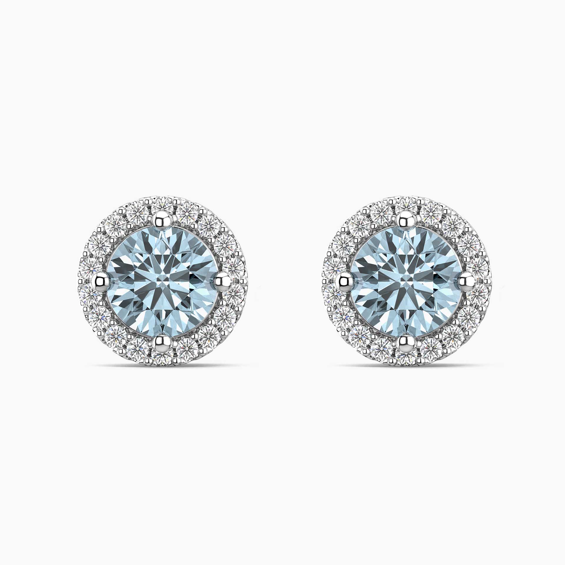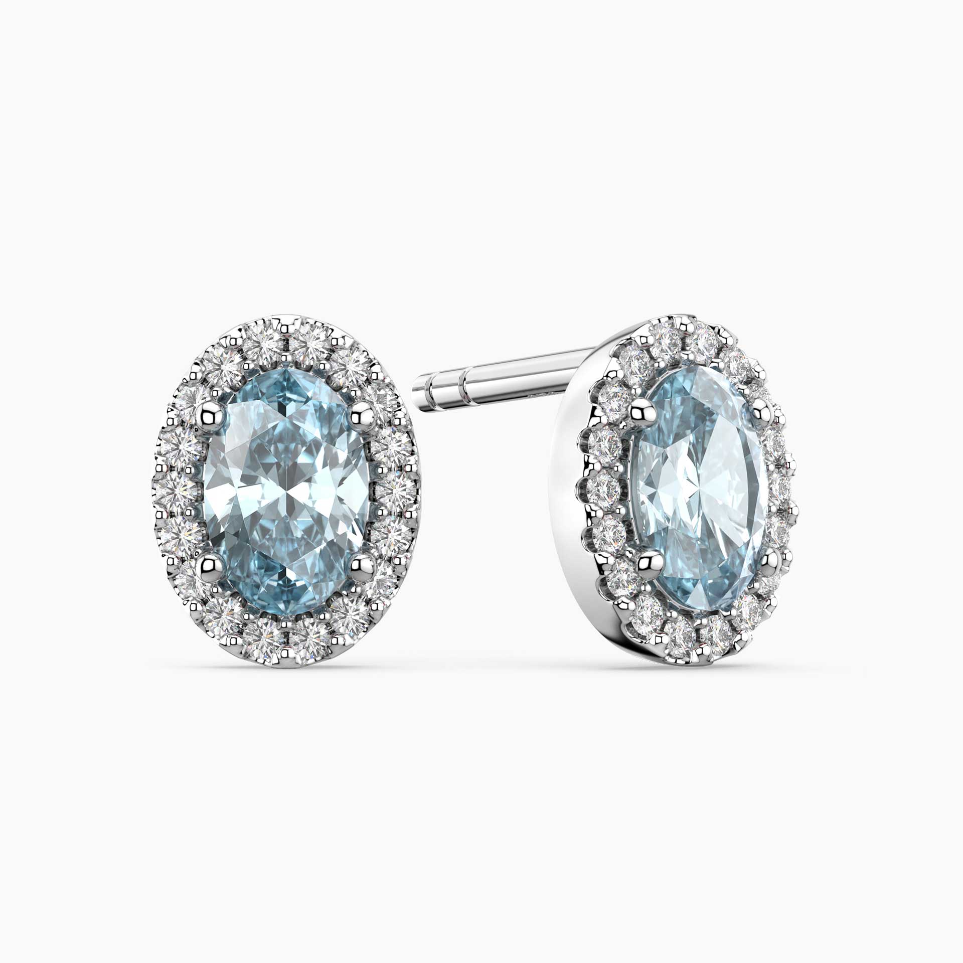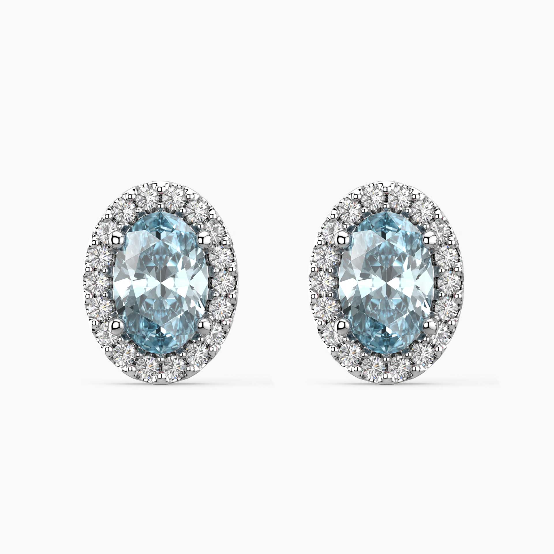 Oval Aquamarine Halo Stud Earrings – Sterling Silver | Irosk