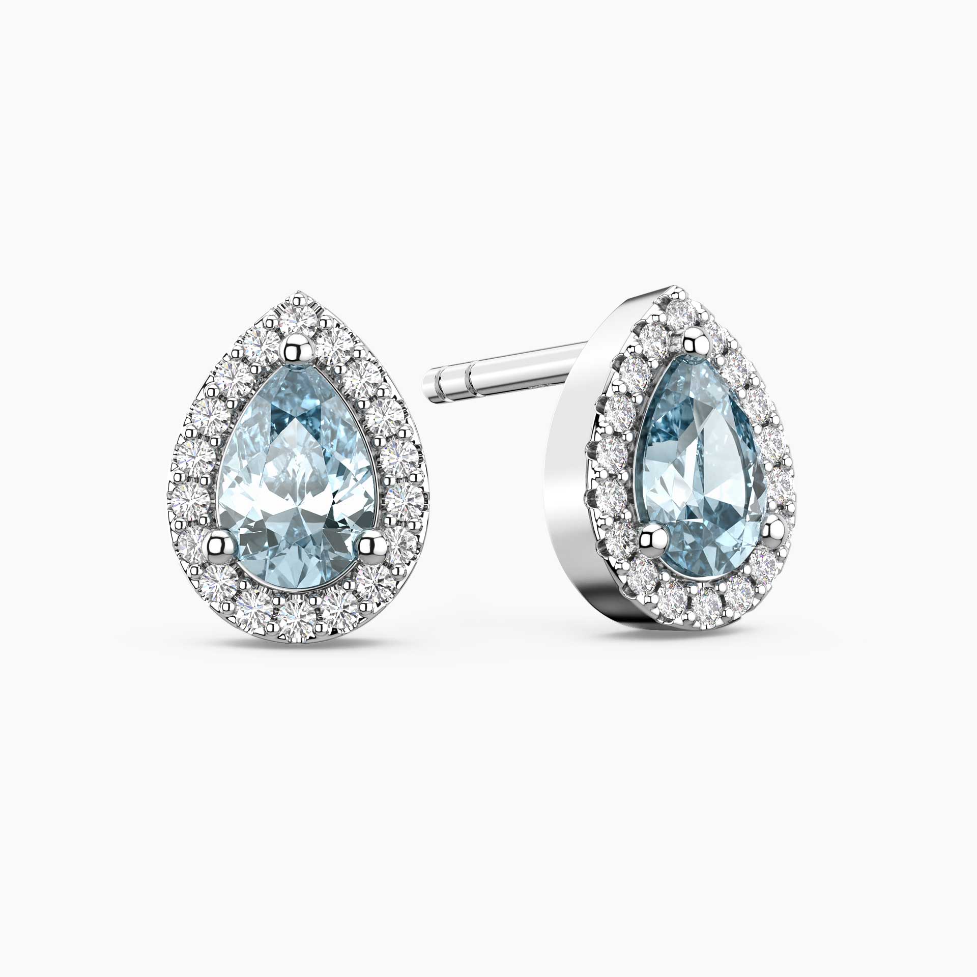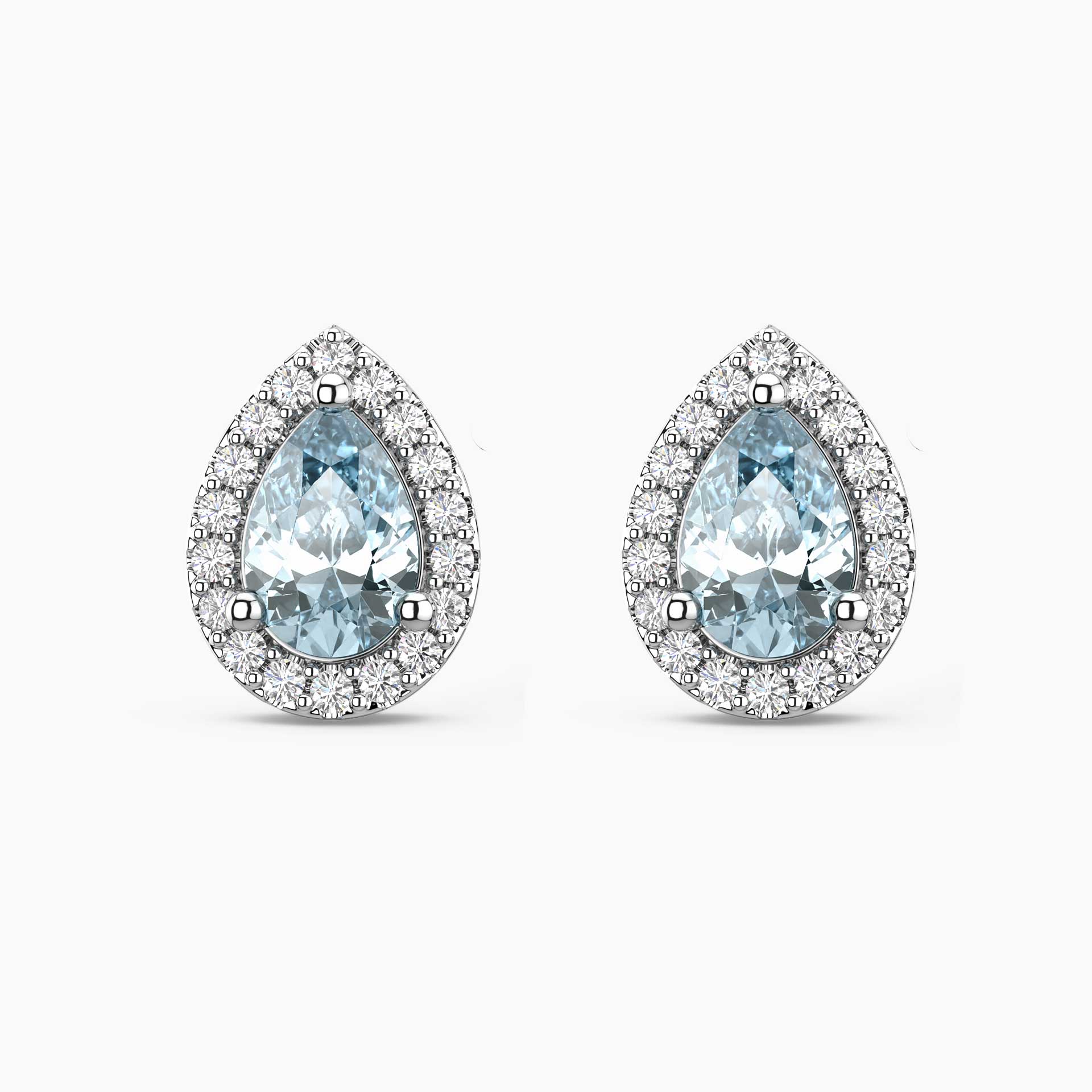 Pear Aquamarine Halo Stud Earrings | Sterling Silver