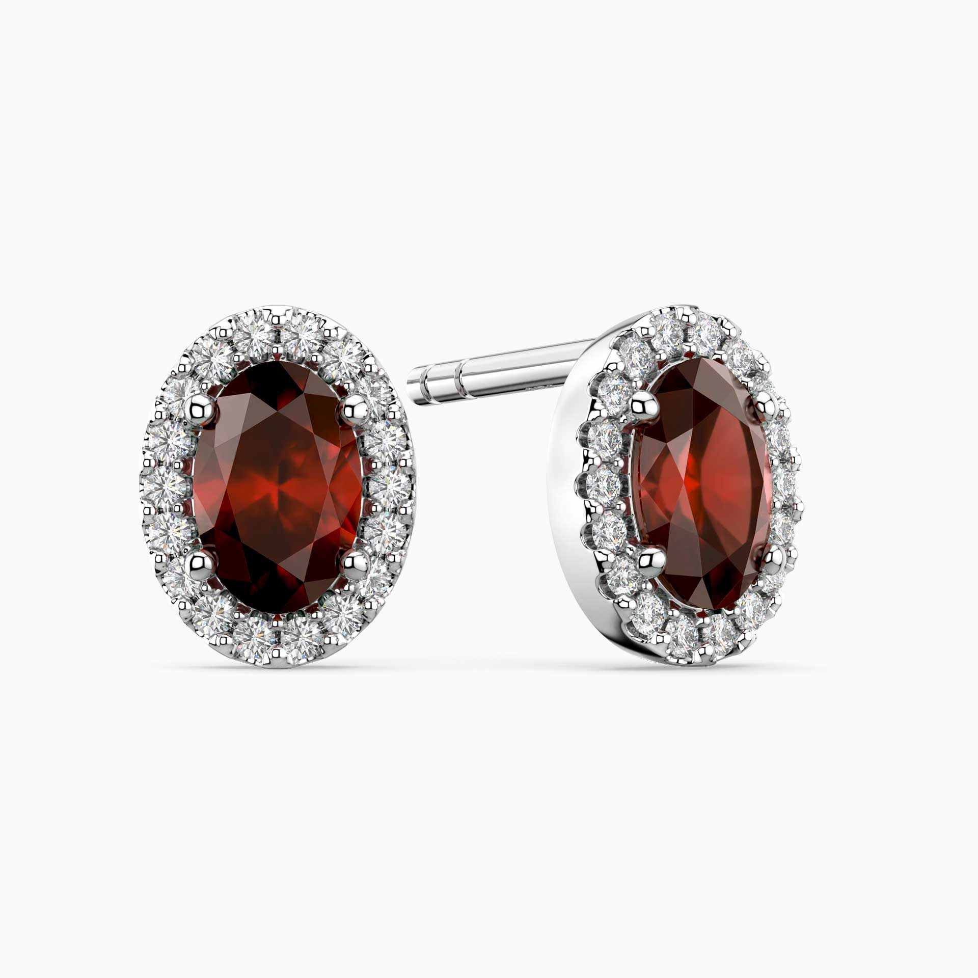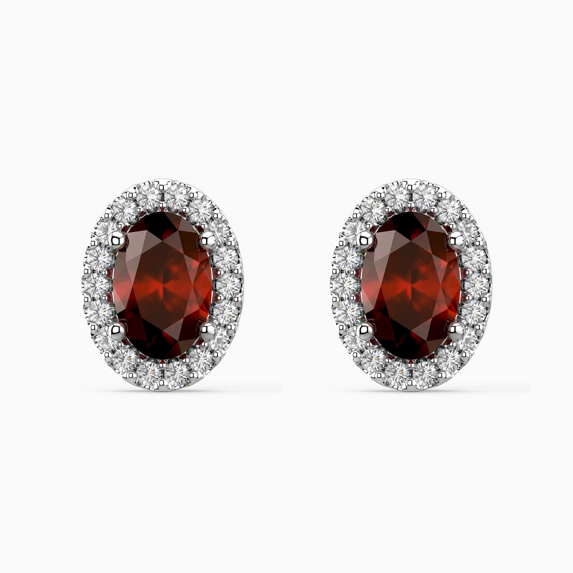 Oval Garnet Halo Stud Earrings – Sterling Silver | Irosk