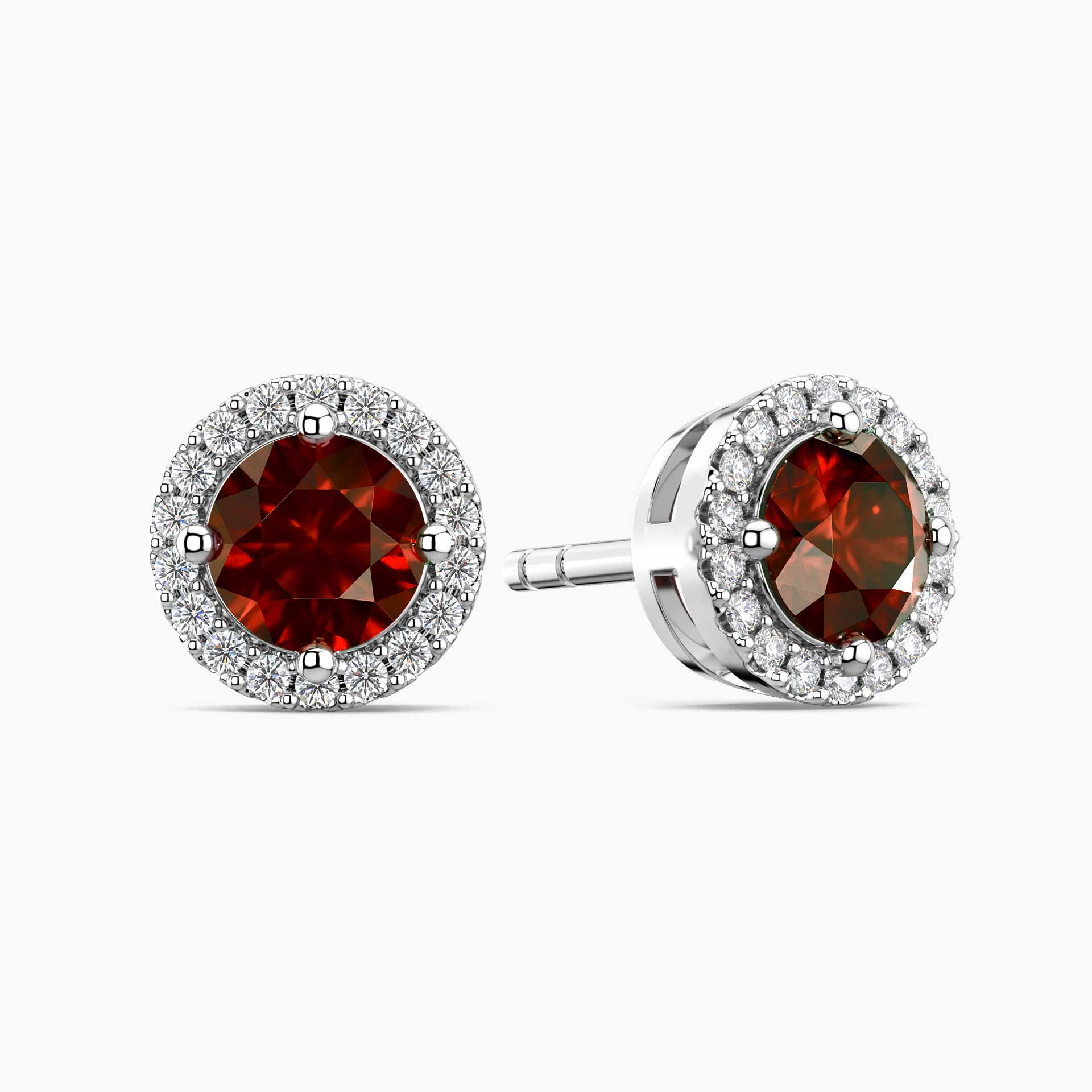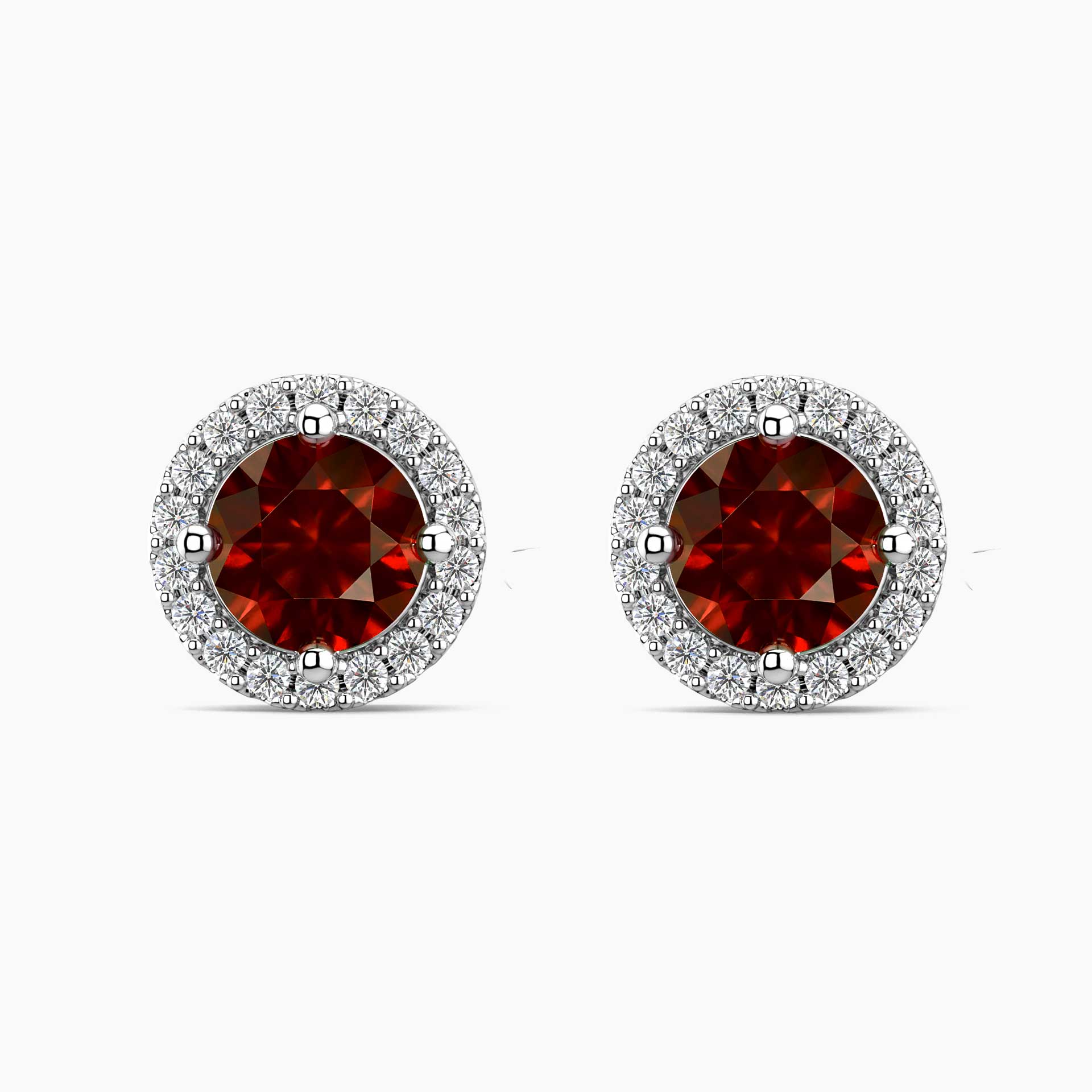 Round Garnet Halo Earrings | Sterling Silver | Irosk