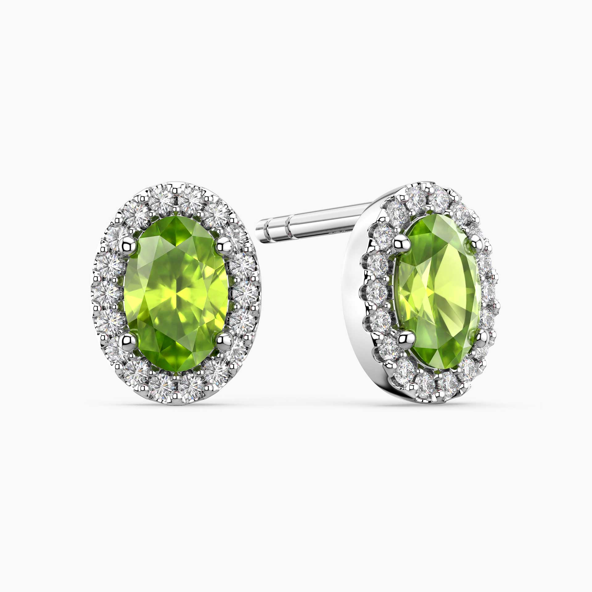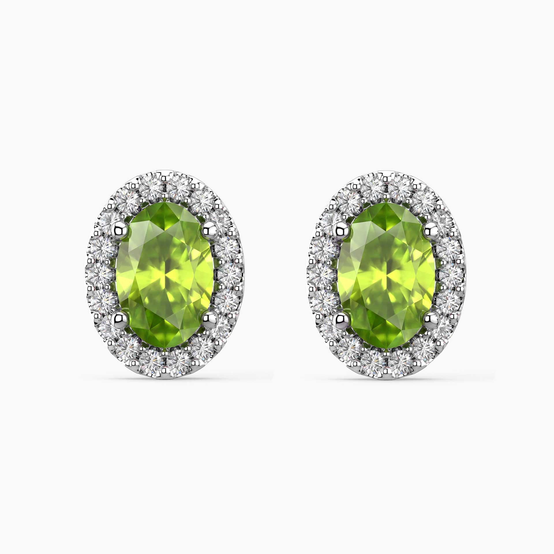 Oval Peridot Halo Stud Earrings – Sterling Silver | Irosk