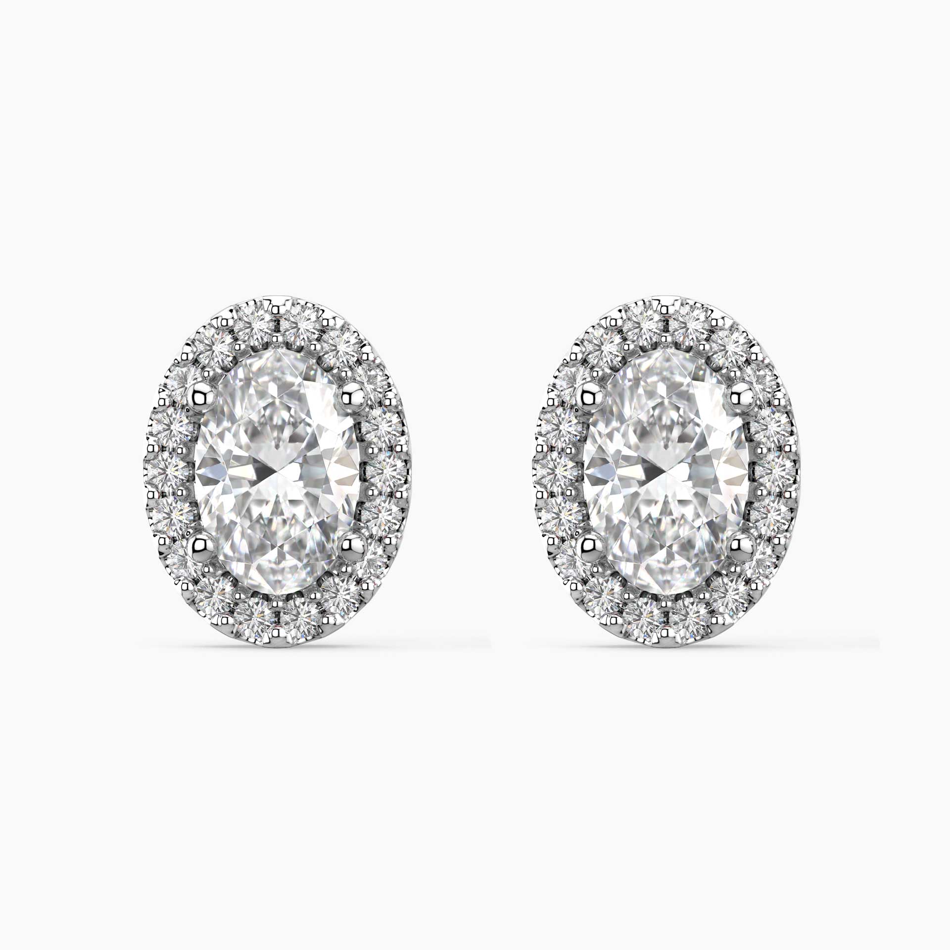 Oval Moissanite Halo Stud Earrings – Sterling Silver | Irosk