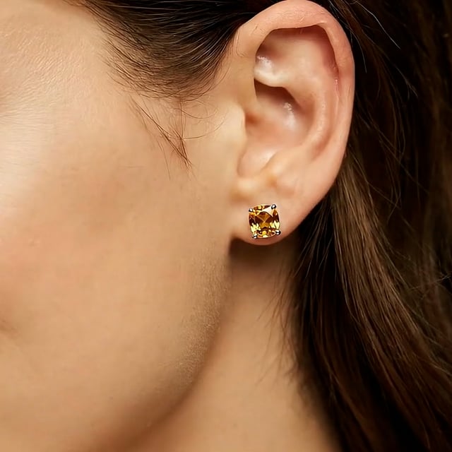 Cushion Cut Citrine Earrings in Sterling Silver | Irosk ®
