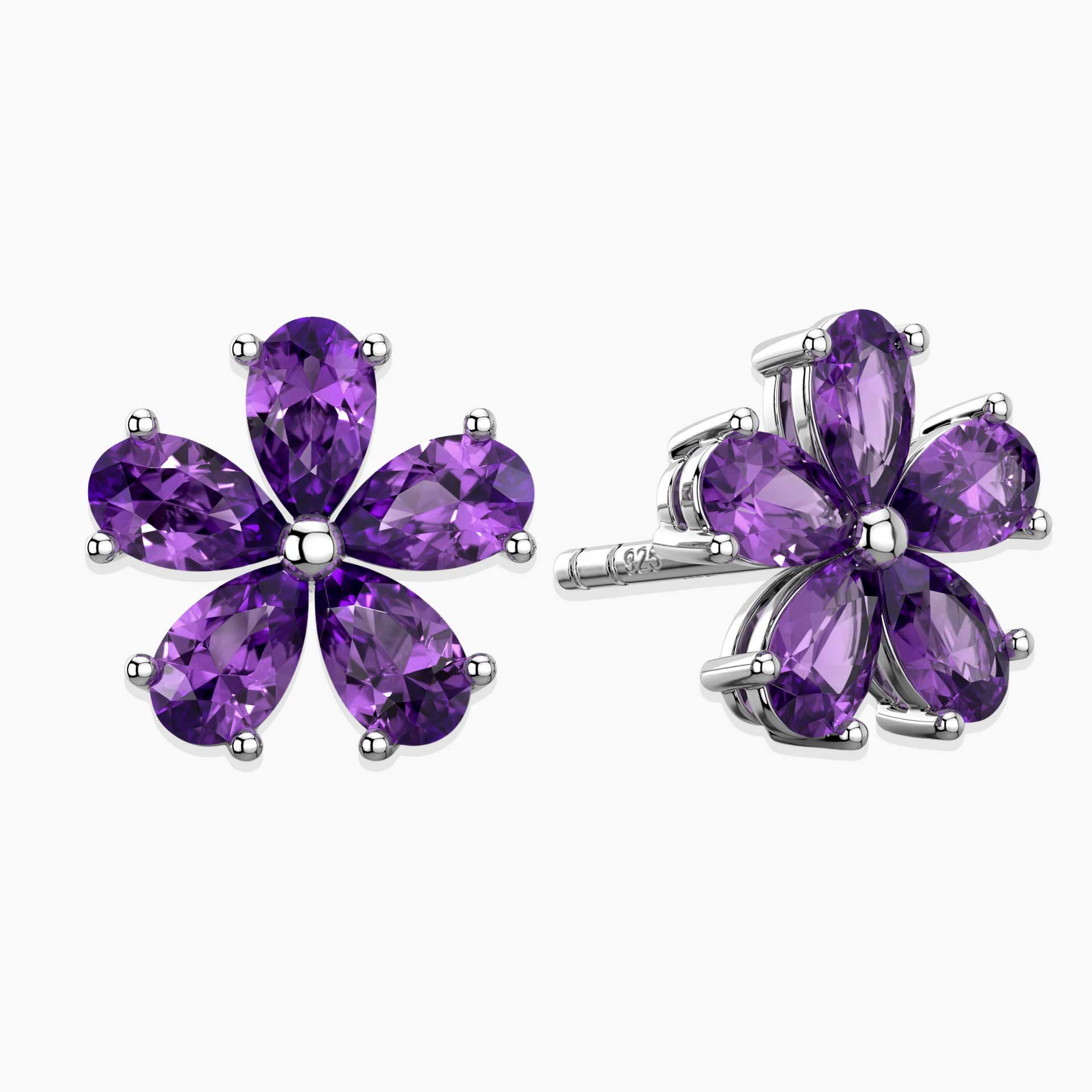 Flower Studs Earrings in Sterling Silver - Amethyst
