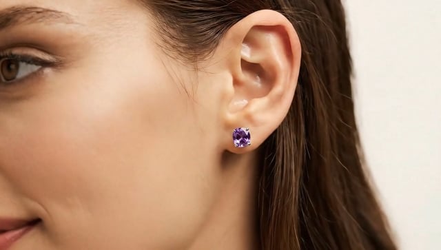 Cushion Cut Stud Earrings in Sterling Silver - Amethyst