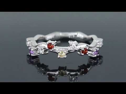 Embrace celestial beauty with our Rainbow Galaxy Ring. Crafted in sterling silver, this stunning piece features an array of vibrant gemstones, including amethyst, citrine, garnet, and CZ, arranged in a mesmerizing galaxy pattern. Elevate your look and add a touch of color and sparkle to any outfit with this captivating ring.