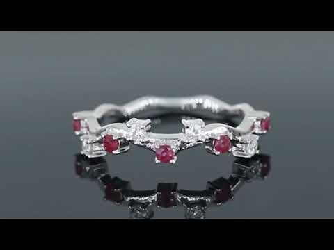 Embrace the cosmos on your finger with the captivating Galaxy Gleam Ruby Ring. This celestial masterpiece, crafted from gleaming rhodium-plated sterling silver, features a breathtaking display of natural ruby gemstones. Each ruby shimmers with a fiery brilliance, like a tiny constellation captured in light.