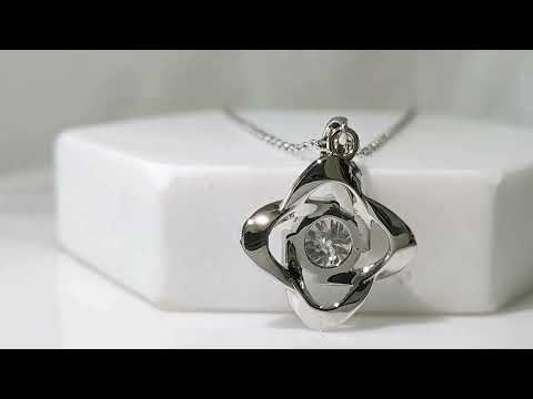 Each pendant is rhodium-plated for enhanced brilliance and protection against tarnish, ensuring it remains a treasured piece for years to come. At its center is a dazzling 6.5 mm moissanite stone, chosen for its unmatched sparkle and eco-friendly origins.