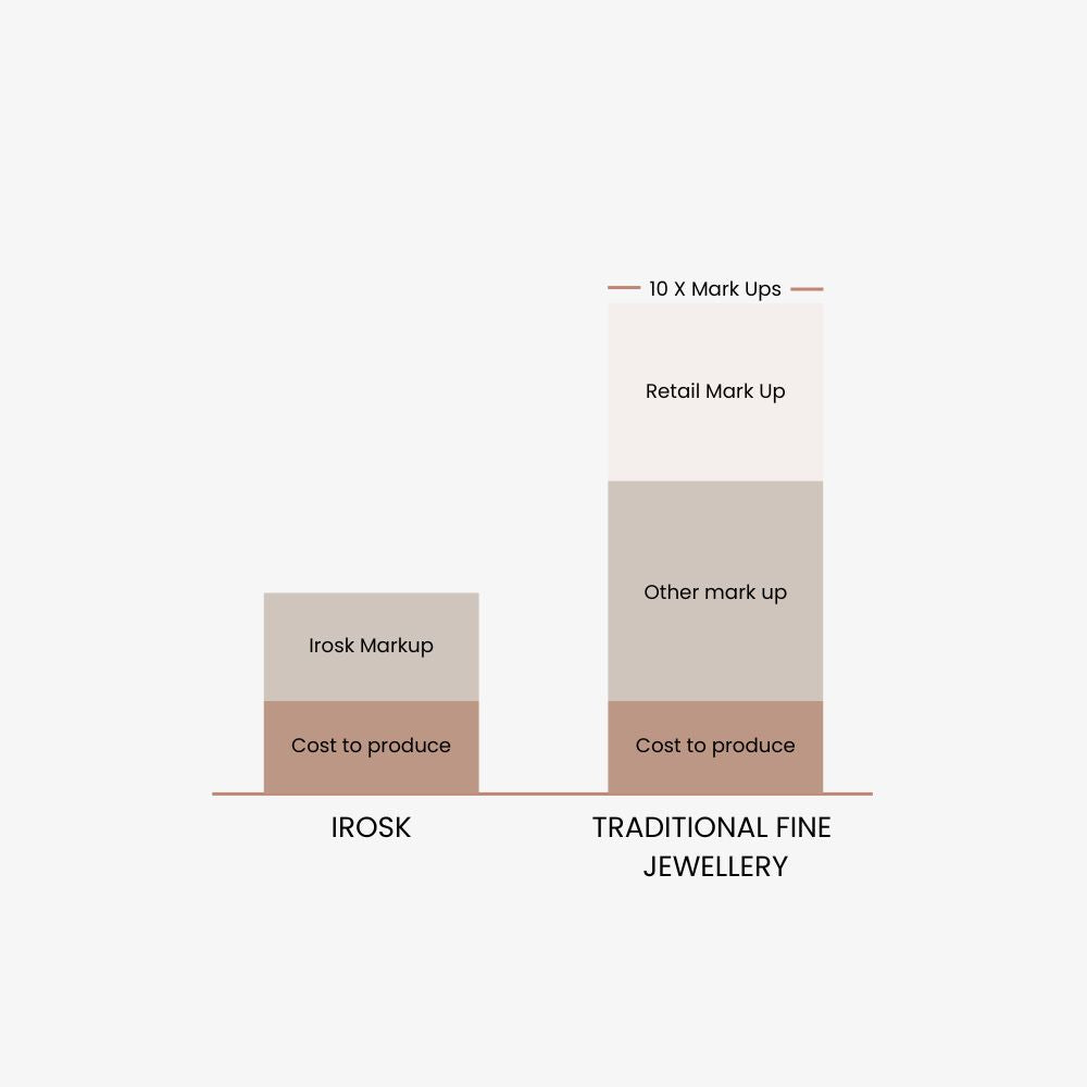 At Irosk Australia, we believe luxury shouldn’t come with a high price tag. Unlike traditional fine jewellery, which can include up to 10x markups, our pricing is transparent and fair. By keeping our markups minimal, we ensure you receive premium, handcrafted jewellery at a fraction of the cost, without compromising on quality or style.